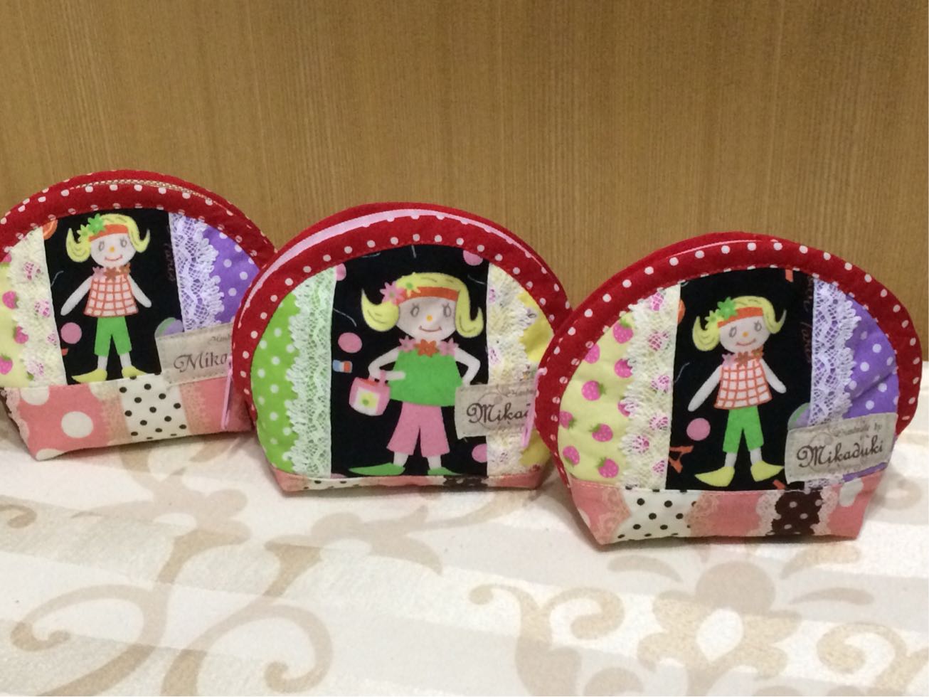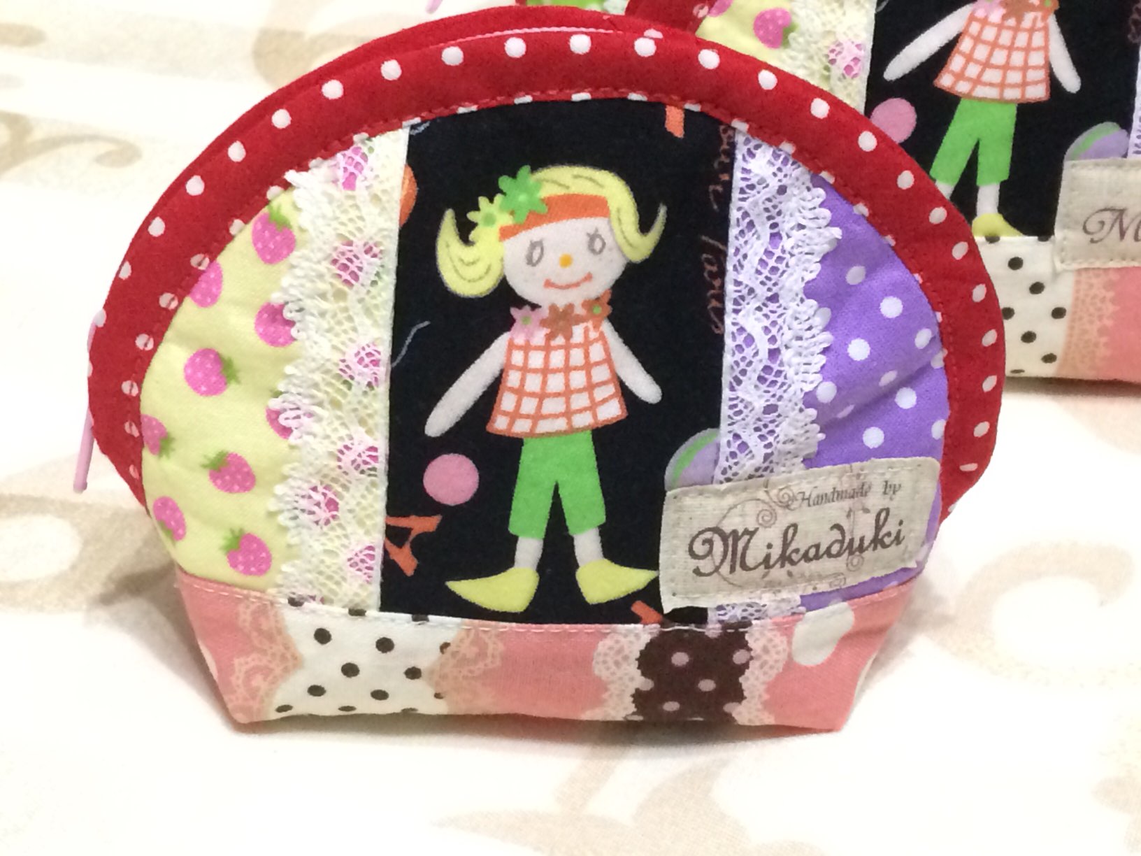 布を継ぎ合わせたタイプのポーチを 作ってみました