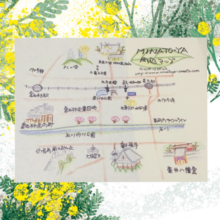 包装紙が お店の周辺マップになっていて