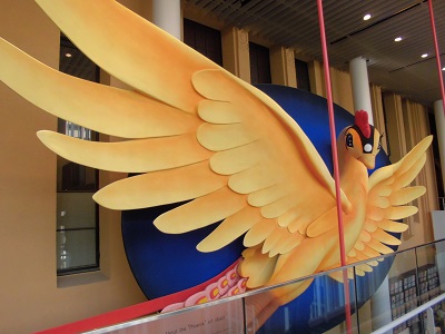 吹き抜け部分に 手塚治虫の火の鳥 ↑