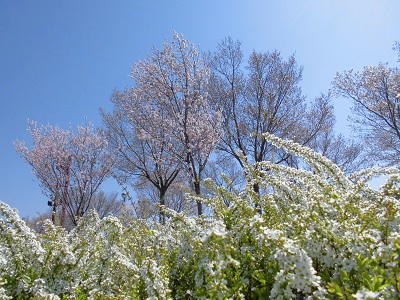 白い雪柳も 美しい(>_<)