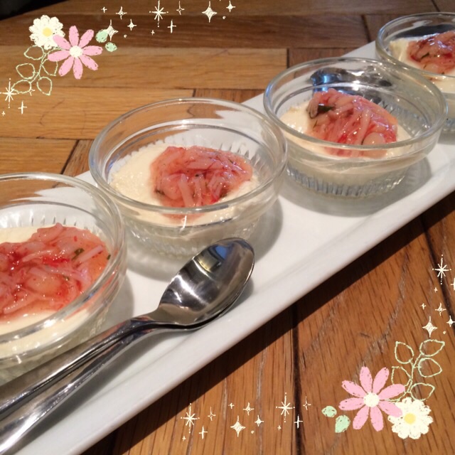 お豆腐に 紫蘇と梅のソースで和えたえのきが 乗ってます