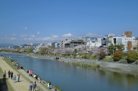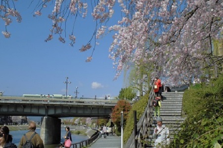 四条大橋を渡りきった 川端通り側から 階段を下りて 遊歩道に...