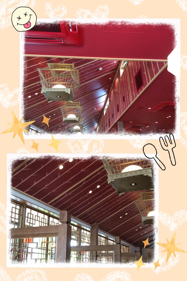 天井は 赤くて 席を区切るパーテーションも 中華風