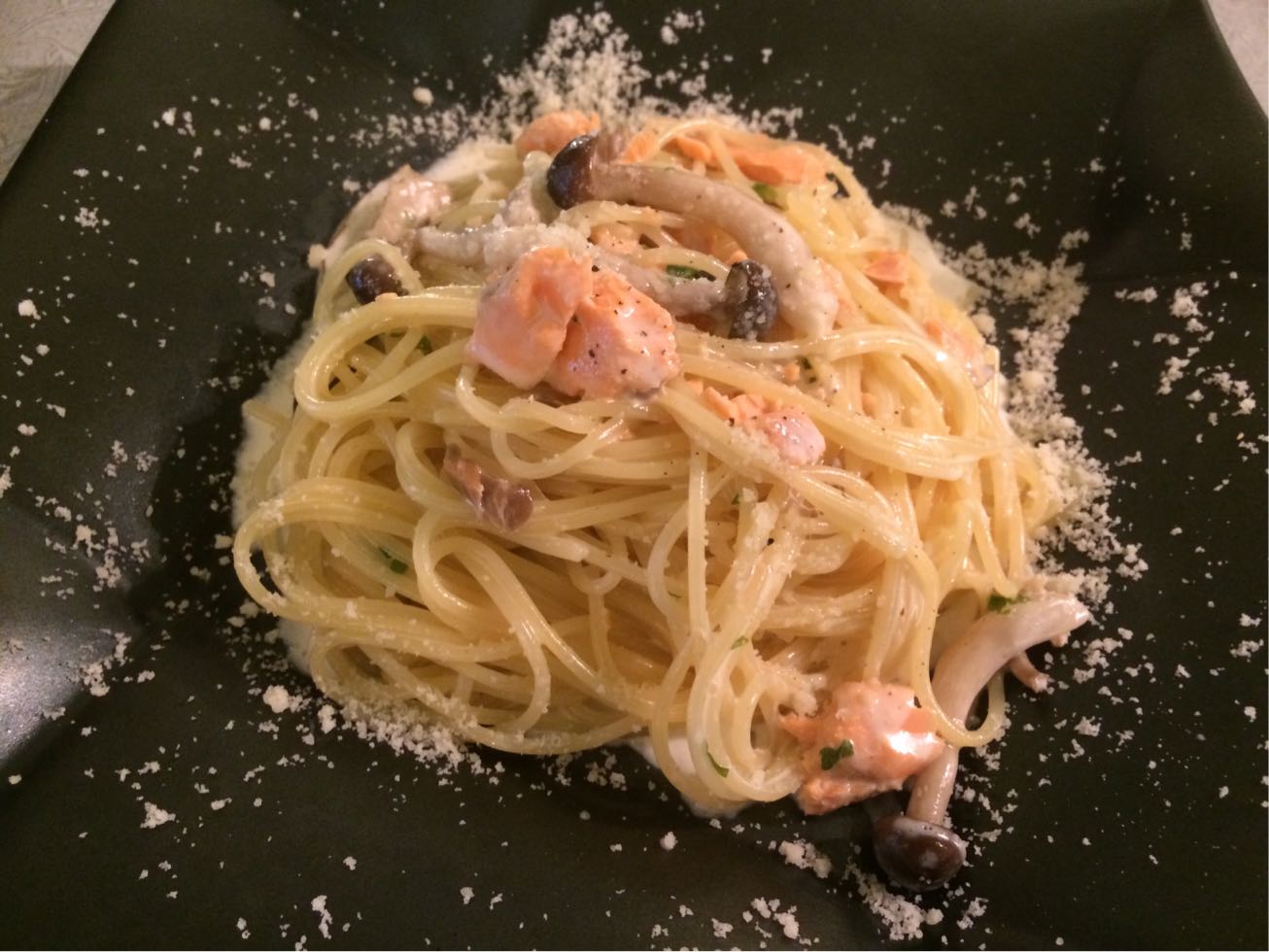 秋鮭と茸のクリームパスタ