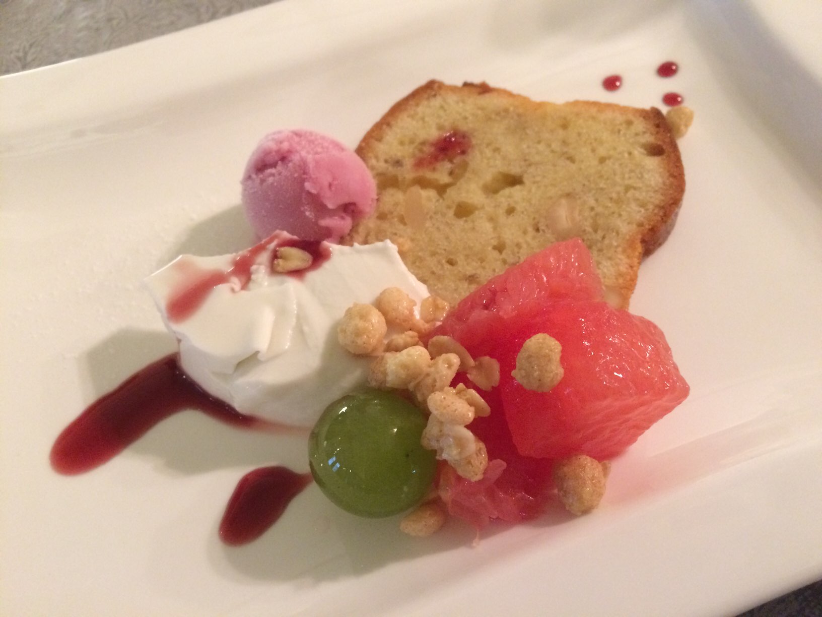 ラズベリーのアイスと バナナのムース(多分)のデザート