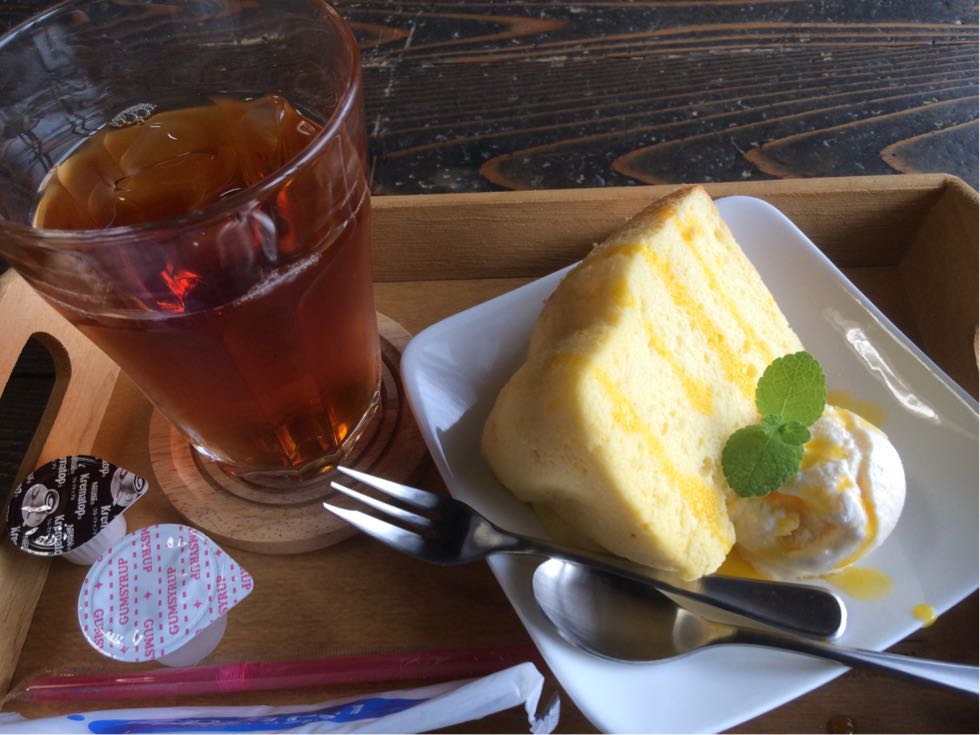 マンゴーのシフォンケーキと アイスミルクティのセットです