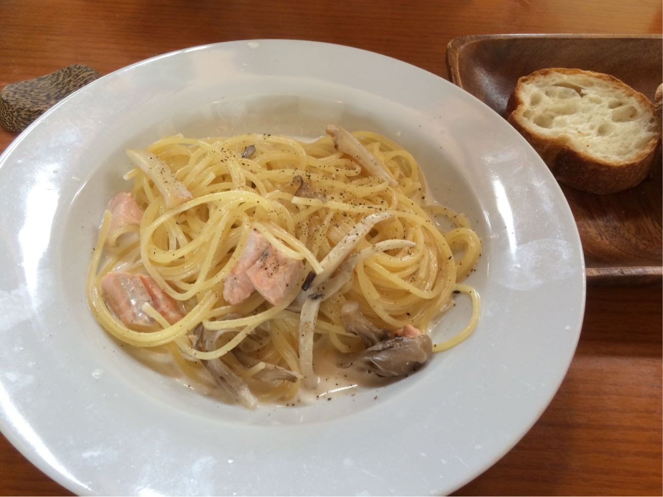 秋鮭とキノコのクリームパスタは 娘のオーダー