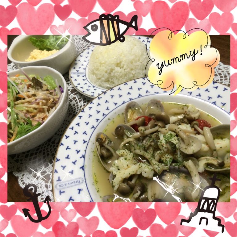 アクアパッツァに合わせて ご飯は バターライスにしました