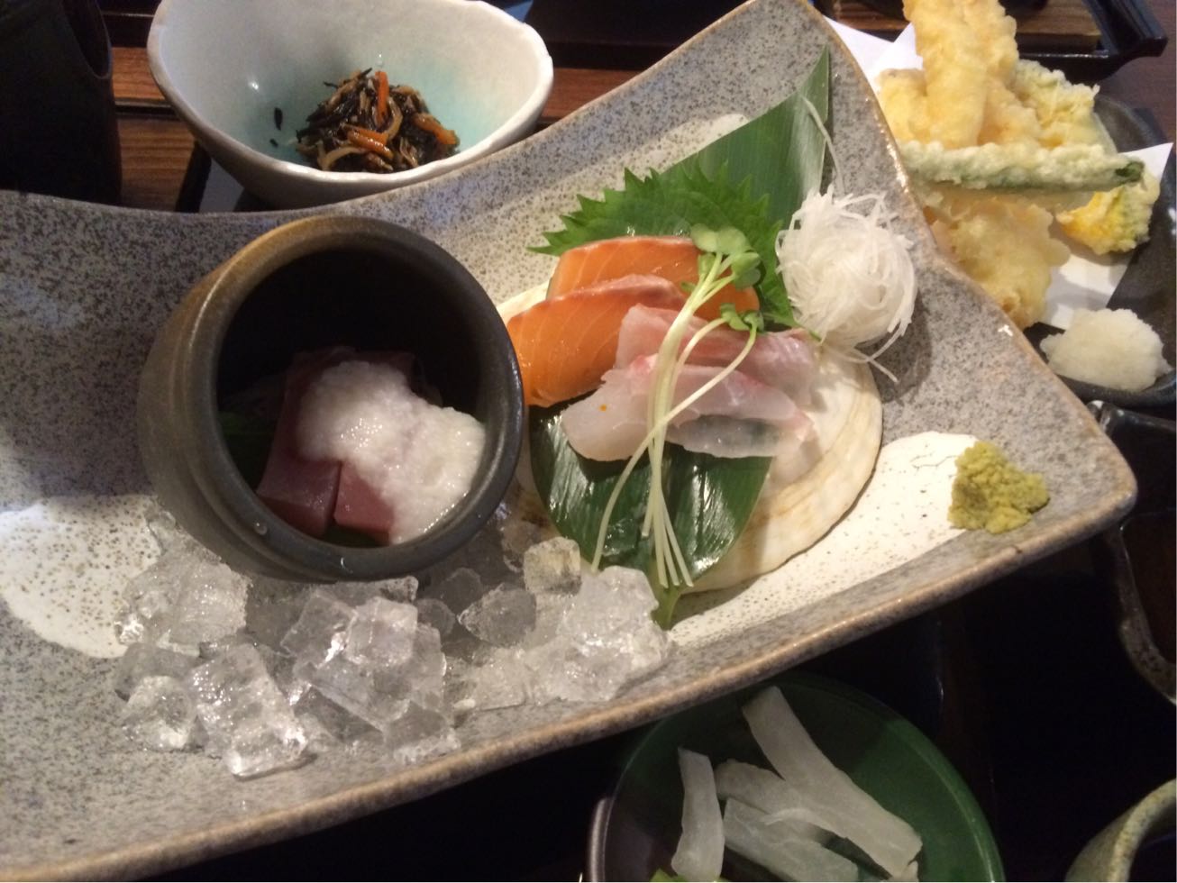 お造り3点盛り(鯛・サーモン・まぐろとろろ)