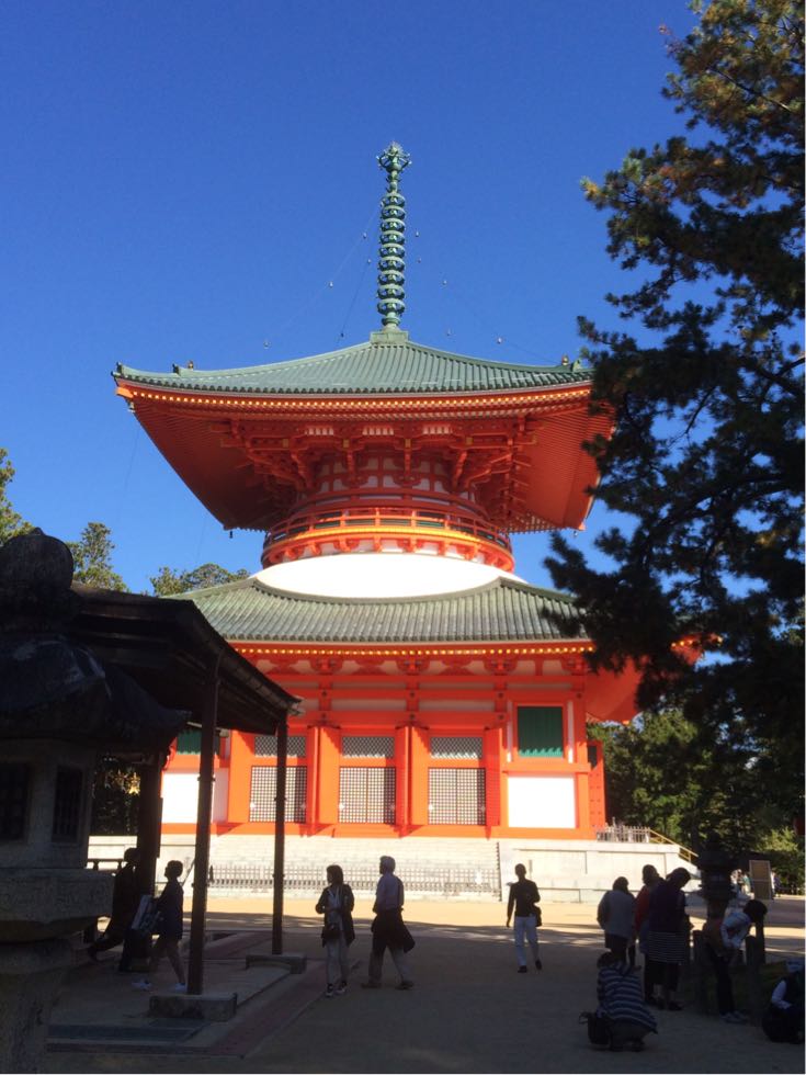 根本大塔の鮮やかな朱色と真っ青な空とのコントラストが最高に綺麗です。