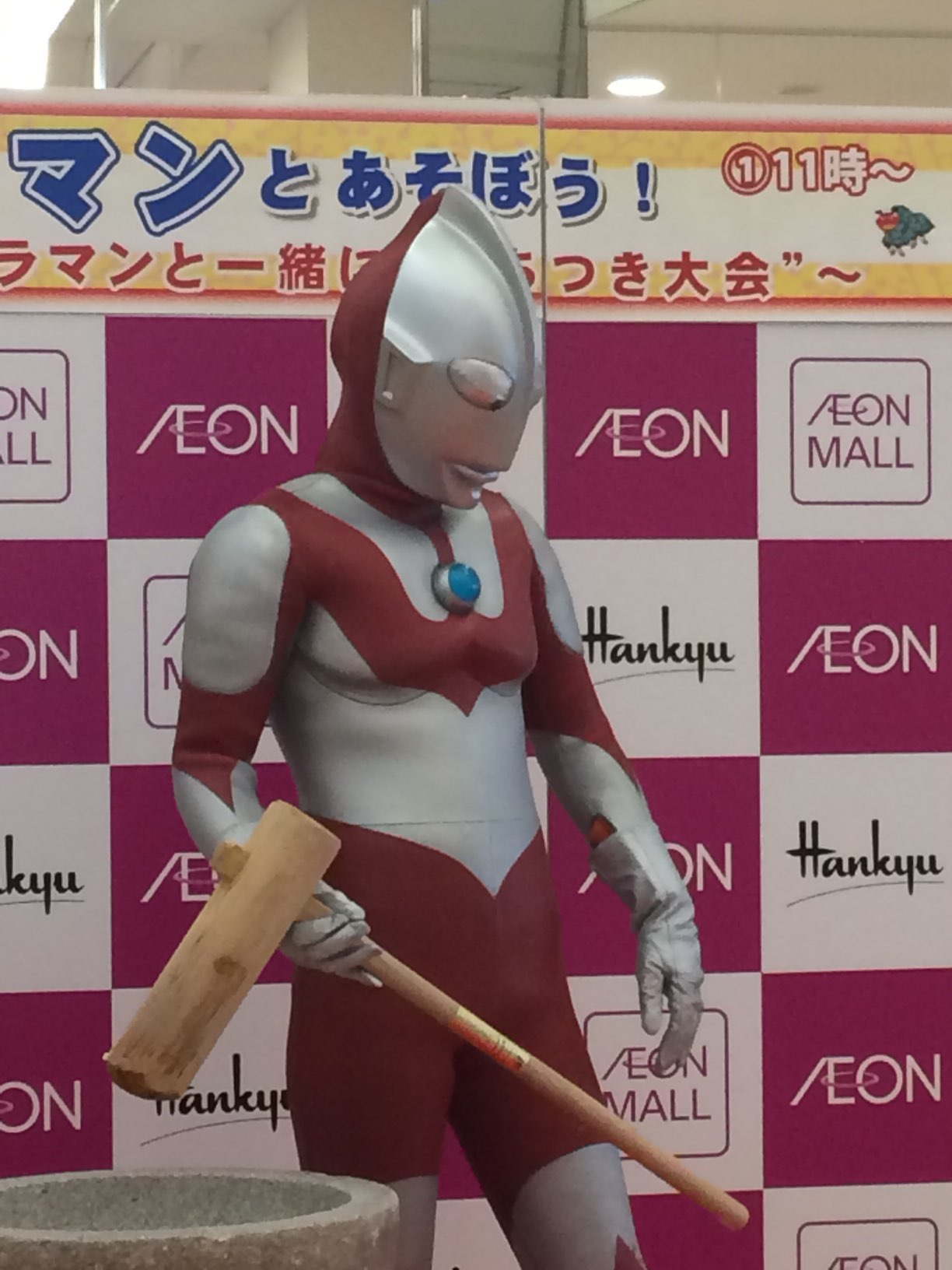 ウルトラマンが来て お餅つきをしてました