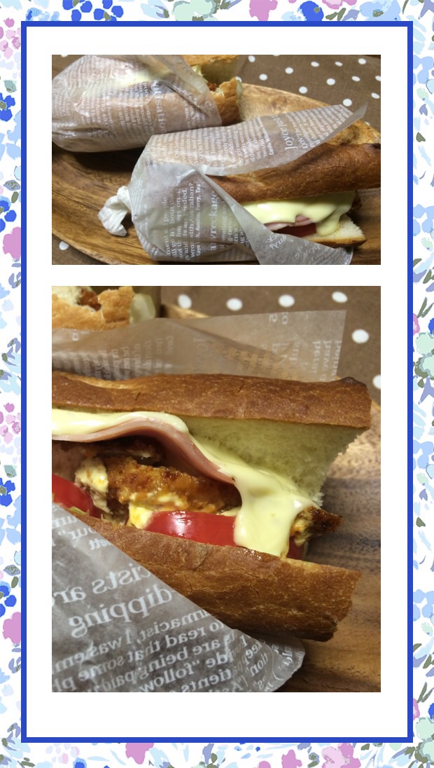 息子が作ってくれたチキンサンドですemoji