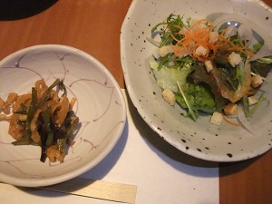 炭火焼コースと フルコースに付いてる小鉢と 炭火コースのサラダ