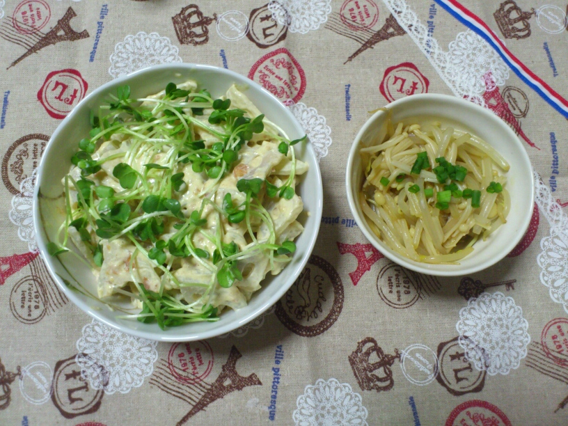 蓮根のサラダと もやしのナムルを 付け合せに 作ってみました