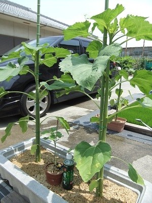 プランターに 植えてる ひまわりや 直植えしてる ひまわり