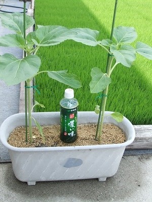 夫が 毎日 ひまわりのお世話を 欠かさずしてくれてます