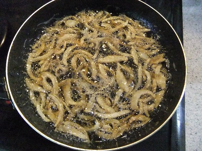 カリッとするまで 中火で