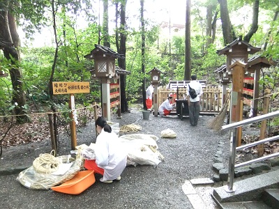 巫女さんや 神職の方が しめ縄や お札の交換と お掃除をされていました