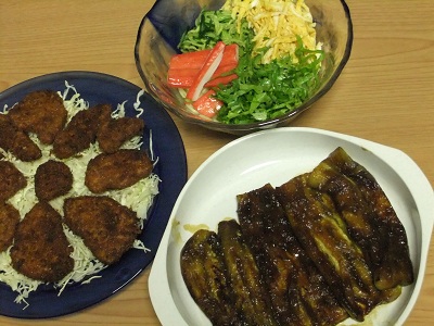 何故か冷麺・ヘレトンカツ・茄子の蒲焼