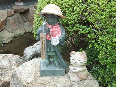 仙人亭の入り口に可愛らしい小僧さんとネコちゃんが...