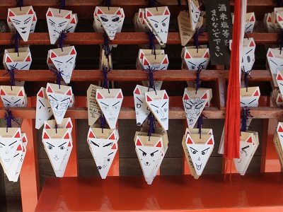 絵馬が 狐さんの顔になっていて