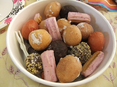 6種類の一口サイズのドーナッツが いっぱい 入ってて