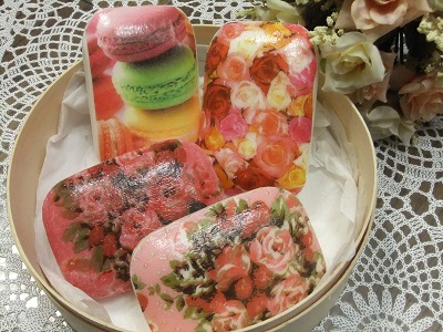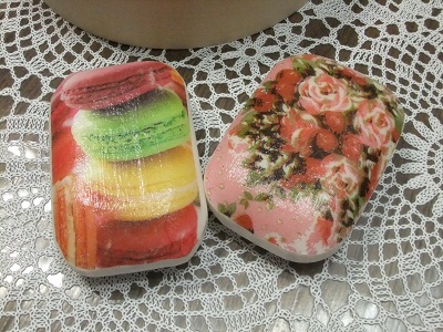 石鹸に 溶剤を塗り 好みのペーパーナプキンを貼り