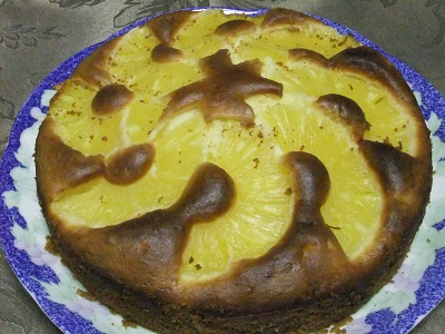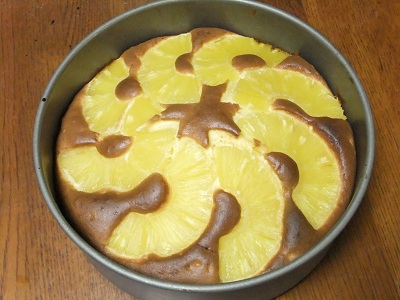 今回 焼き上がったケーキに パイナップル缶のシロップをかけるので