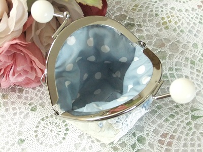 外側の生地に合わせて 中も ブルー系の水玉模様に...