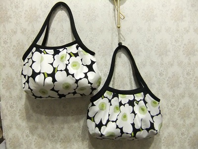 今日キューズモール行ってABCクラフト覗いたら、生地のコーナーにマリメッコの生地で作ったカバンが色々展示されてて