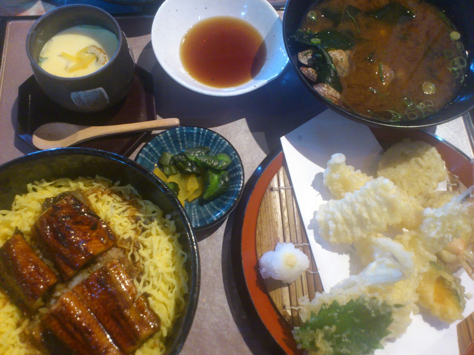 赤出汁と 茶わん蒸しと 天ぷらを付けたら +420円