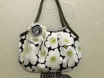バッグの柄とは 反対の白地に 黒いお花にしてみました