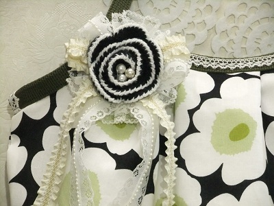 ニットのお花モチーフを 真ん中に レースと リボンで