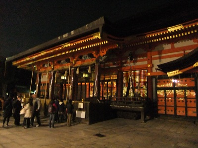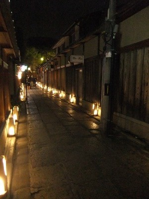 清水寺の参拝を終え 元来た道を戻ると すっかり暗くなって