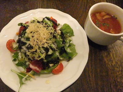 サラダとスープ(ミネストローネ)と ライスorパンのセットで