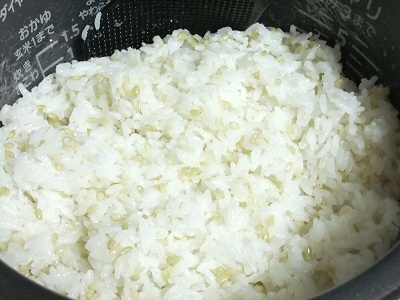 家の白米1合に大さじ1~2の緑米を混ぜて