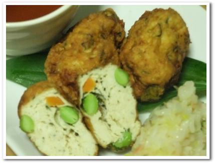 ひろうすの具は 枝豆と 人参と 大葉しそと 青ネギ
