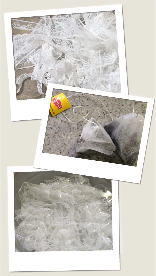 ③ レースを 紅茶に入れる