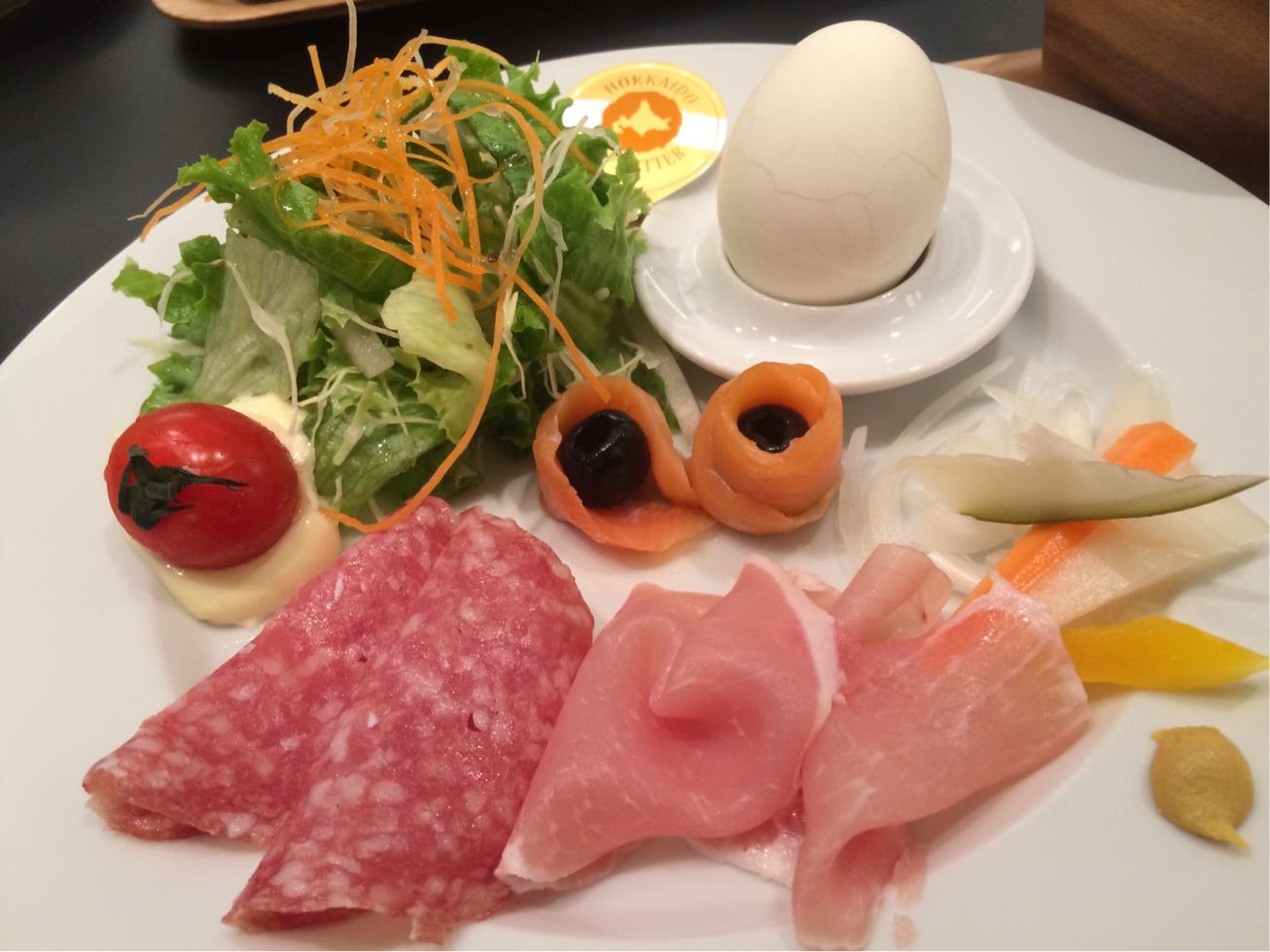2種類の生ハムと スモークサーモン(真ん中は オリーブ)