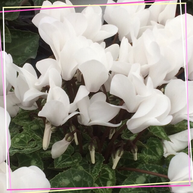 赤も ピンクもあったけど この白いシクラメンが 1番 綺麗に思いました