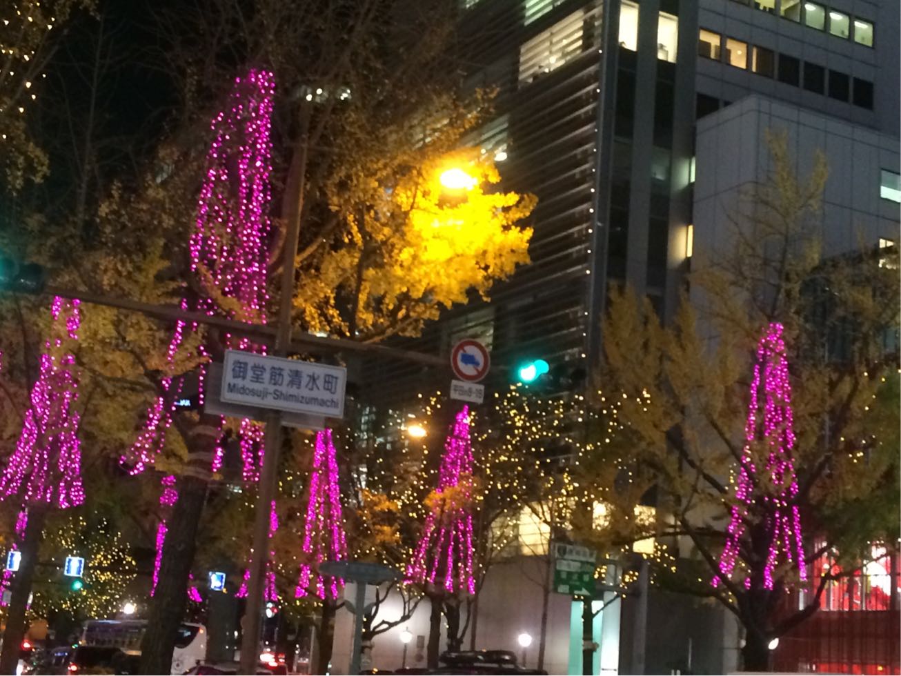 御堂筋沿いのイルミネーションが すっごく綺麗で ちょっと感動