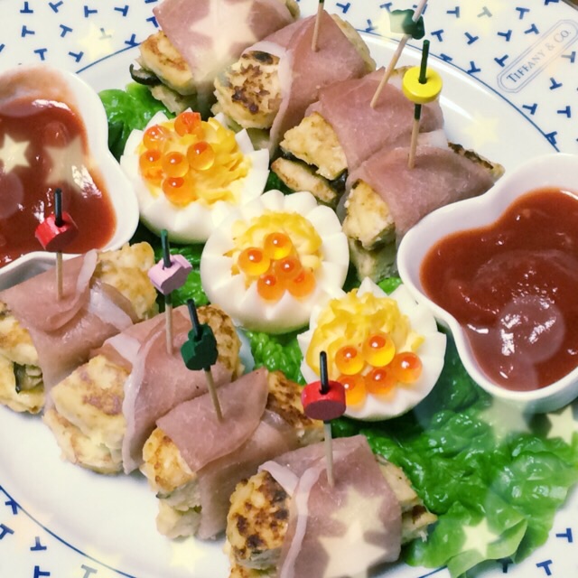 和風ピンチョス (鶏ひき肉と クリームチーズの生ハム巻き)