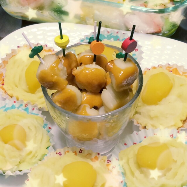 同じく 重箱に入りきらなかった 金塊ホタテと 栗きんとん