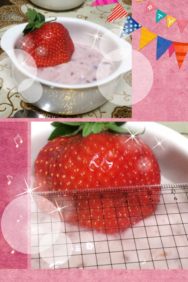 娘が イチゴのフルーチェに乗せて 持って来てくれました
